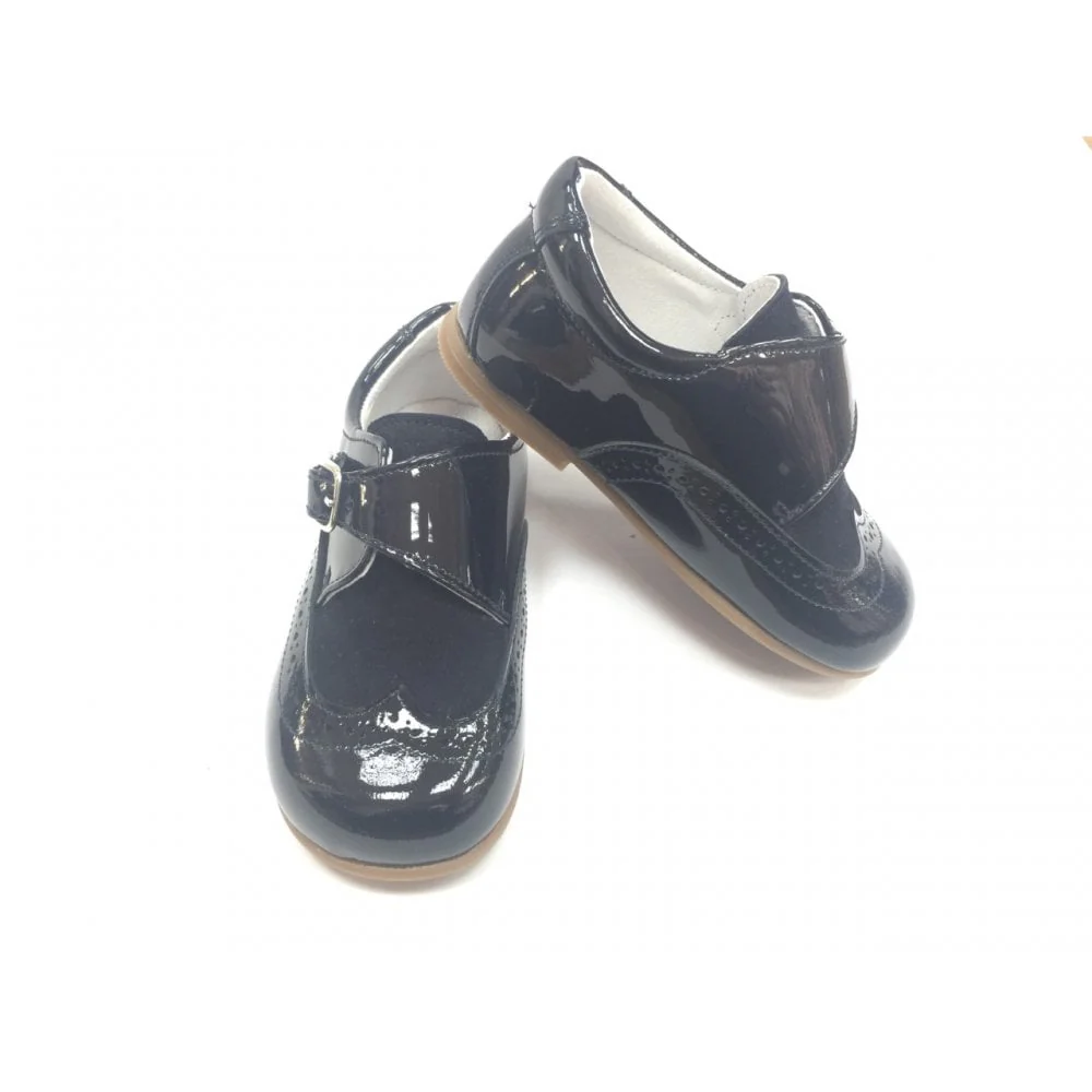12069 Boys Brogue Buckle Navy Shoe