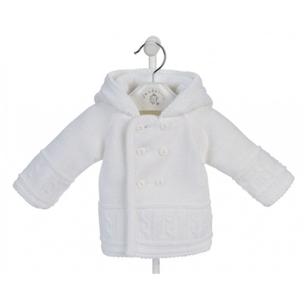 A1570 White Knitted Baby Jacket With Hood