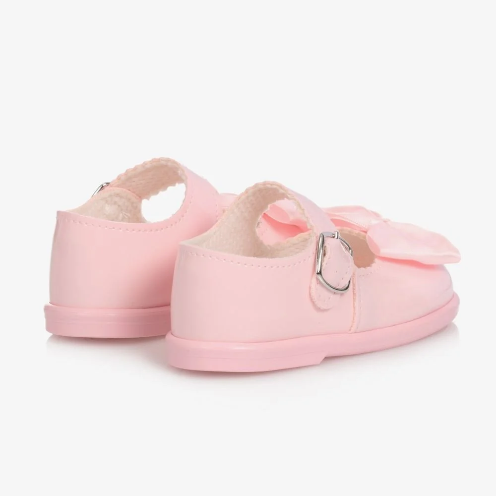 Girls walker shoes by Bay Pods. Faux leather shoe with cute bow detailing and a rubber flexi sole. Adjustable buckle fastening at the side.