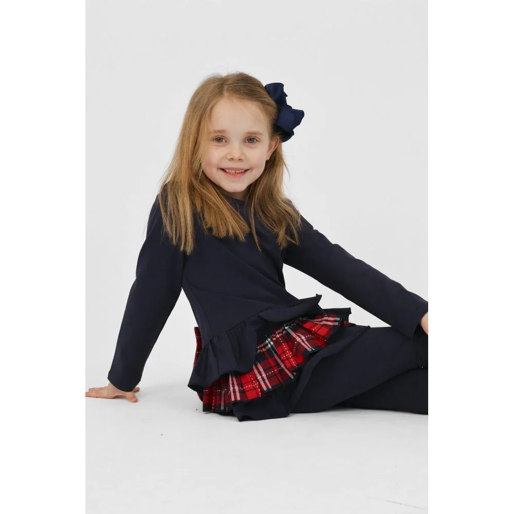 Darcy Girls Frilly Tartan Bow Tracksuit Navy