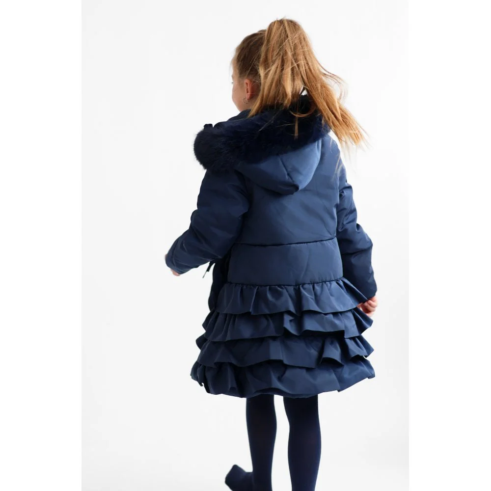 A simply stunning ruffled padded coat with bows on the front. This Coat has a elegant look and feel with its many ruffles giving it a extravigant vision and fullness, the inside is lined with fleece giving a extra layer of warmth on those chilly days.